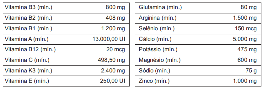 NÍVEIS DE GARANTIA POR KG DO PRODUTO: APRESENTAÇÕES Saquinhos com 500g