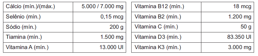 NÍVEIS DE GARANTIA POR KG DO PRODUTO: APRESENTAÇÕES: Frasco de 15 ml.