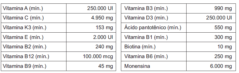 INDICAÇÃO DE USO O Life-Plus® Aarão é um premix vitamínico, complementar com aditivo anticoccidiano, indicado para Aves na prevenção da coccidiose causada por Eimeria acervulina, E. brunetti, E. necatrix, E. maxima, E. tenella, E. Mivati. Também é indicado como melhorador de desempenho, para Aves em todas as fases, para melhores parâmetros produtivos como ganhos de peso e conversão alimentar.
