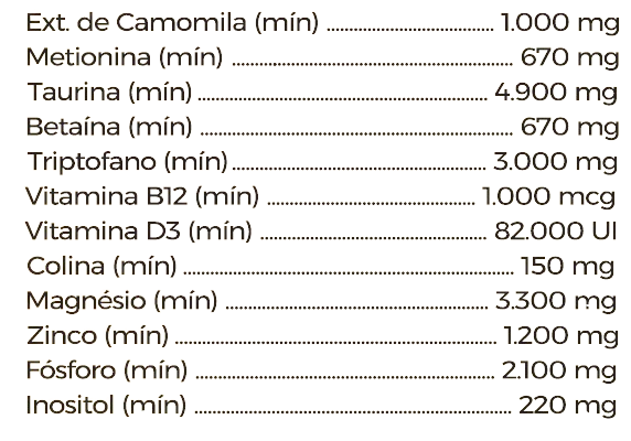 INDICAÇÃO DE USO: Neuropet® é um suplemento composto de Aminoácidos, Vitaminas e Minerais Quelatados específicos, associados ao Extrato de Camomila, que atuam em diversos sistemas e órgãos vitais, contribuindo em sua manutenção e funcionamento adequado, e auxiliando, inclusive, em situações de estresse. Possui uma formulação especial, balanceada, indicada para Cães e Gatos, de todas as idades.